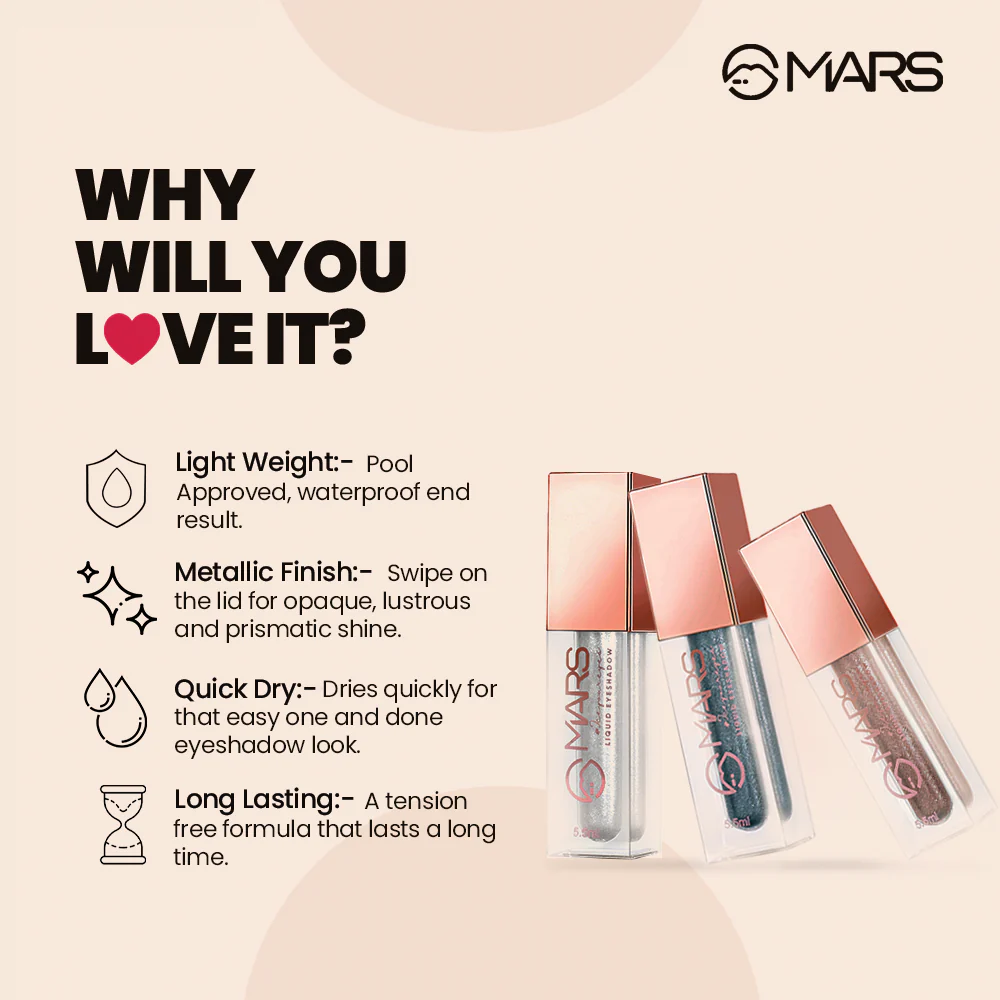 Add a touch of sparkle with MARS Glitter Liquid Eyeshadow, your go-to for long-lasting shimmer. Its water-infused formula glides on smoothly with the wand applicator and dries to a dazzling finish that never dulls. Enjoy a vibrant, fallout-free look that elevates any makeup style.